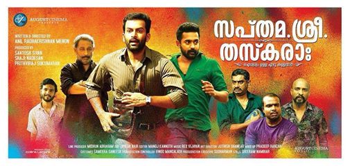അനില് രാധാകൃഷ്ണ മേനോന് സംവിധാനം ചെയ്യന്ന പുതിയ ചിത്രം ‘സപ്തമ ശ്രീ തസ്കര’ സെപ്റ്റംബര് 5 ന് തിയേറ്ററുകളിലെത്തും. പേര് പോലെ തന്നെ എഴ് കള്ളൻമാരുടെ കഥയാണ് ചിത്രത്തിൽ പറയുന്നത്. പൃഥിരാജ് കേന്ദ്രകഥാപാത്രമാകുന്ന ചിത്രത്തില് നായികയായെത്തുന്നത് റീനു മാത്യൂസ് ആണ്. തൃശ്ശൂര് പശ്ചാത്തലമാക്കിയാണ് ചിത്രം അവതരിപ്പിച്ചിരിക്കുന്നത്. 10 കോടി ചെലവില് സന്തോഷ് ശിവന്, ഷാജി നടേശന്, പൃഥീരാജ് കൂട്ടുകെട്ടിൽ ആഗസ്റ്റ് സിനിമാ നിര്മിക്കുന്ന ചിത്രത്തിൻറെ വിതരണവും ഇവർ തന്നെയാണ്. നോര്ത്ത് 24 കാതത്തിനു ശേഷം അനില് രാധാകൃഷ്ണൻ സംവിധാനം ചെയ്യുന്ന ചിത്രത്തിൽ ആസിഫ് അലി , നെടുമുടിവേണു, നീരജ് മാധവ്, സുധീര് കരമന, സലാം ബുഖാരി, ചെമ്പന് വിനോദ്,മംഗോളിയന് സര്ക്കസ് താരം ഫ്ലവര് ബാറ്റ്സെറ്റ് സെഗ്,സനൂഷ, ജോയ് മാത്യൂ എന്നിവരും അഭിനയിക്കുന്നു.