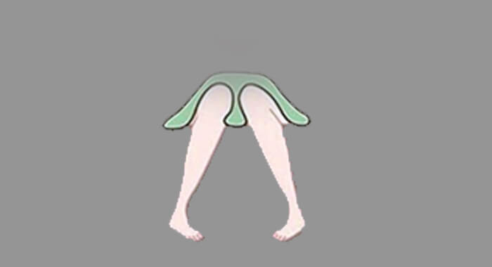 4. കാല്‍മുട്ടുകള്‍ അകത്തി കാലിന്റെ ഉപ്പൂറ്റി ചേര്‍ത്തും എന്നാല്‍ പാദങ്ങള്‍ പുറത്തേക്കുമെന്ന രീതിയില്‍ കാലുകള്‍ വച്ച് ഇരിക്കുന്നവര്‍ എപ്പോഴും അവര്‍ക്കു സൗകര്യപ്രദമായതിനെ തെരഞ്ഞെടുക്കുന്നവരാണ്. തന്റെ സൗകര്യങ്ങള്‍ക്കു വേണ്ടതെന്തെന്നറിഞ്ഞു അവ നേടാന്‍ മിടുക്കരാണെങ്കിലും ആ സുഖം നിലനിര്‍ത്താനായി അവര്‍ പ്രയത്‌നിക്കാറൊന്നുമില്ല. ഇത്തരക്കാര്‍ മുന്‍ധാരണകളില്ലാതെ വസ്ത്രങ്ങള്‍ തെരഞ്ഞെടുക്കുന്നവരാണ്. പലപ്പോഴും മറ്റുള്ളവരുടെ നോട്ടത്തില്‍ കുഴപ്പക്കാരാണെന്നു തോന്നുമെങ്കിലും അവര്‍ അങ്ങനെ ആയിരിക്കില്ല. ഇവര്‍ക്കുള്ള ഒരേയൊരു കുഴപ്പം ശ്രദ്ധക്കുറവാണ്. അതുകൊണ്ട് ഉണ്ടാകുന്ന പ്രശ്‌നങ്ങളാണ് അവര്‍ക്കു നേരിടേണ്ടി വരുന്നത്.