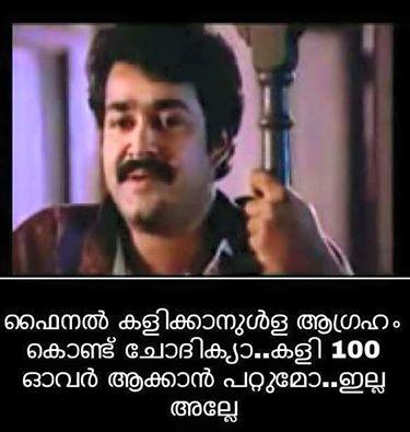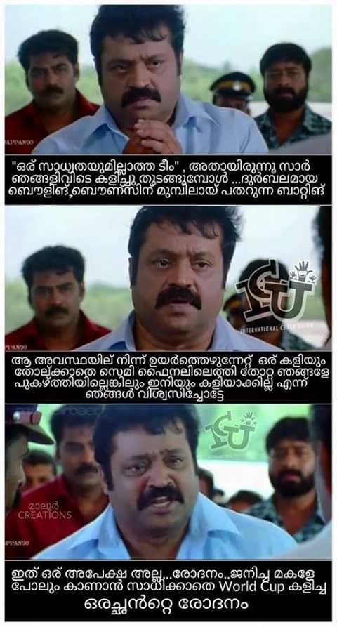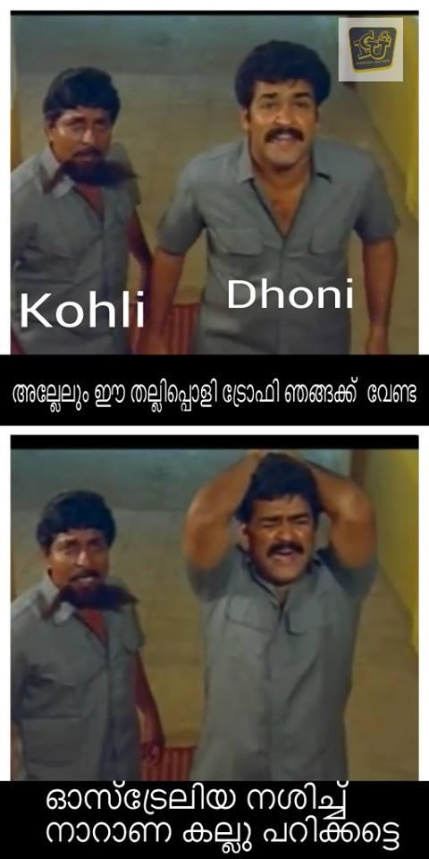 സിഡ്നി: ഏറെ പ്രതീക്ഷയോടെ കാത്തിരുന്ന ഓസ്ട്രേലിയ-ഇന്ത്യ സെമി ഫൈനൽ മത്സരത്തിന്റെ ഒടുക്കം നിരാശയിൽ അവസാനിച്ചു. തോൽവിയില്ലാതെ സെമിഫൈനൽ വരെ എത്താൻ കഴിഞ്ഞ ഇന്ത്യയ്ക്ക് ഫൈനലിൽ എത്താൻ സാധിച്ചില്ല.ഇത് ആരാധകര ഏറെ നിരാശപ്പെടുത്തി.ഇന്ത്യന് ടീമിനെയും നായകന് ധോണിയെയും 13 പന്തില് ഒരു റണ്ണെടുത്ത് പുറത്തായ വിരാട് കോഹ്ലിയെയും കണക്കിന് പരിഹസിക്കുന്ന പോസ്റ്റുകളും സ്റ്റാറ്റസുകളും ഫേസ്ബുക്ക് വാളുകളില് നിറഞ്ഞു തുടങ്ങിയിട്ടുണ്ട്.കഴിഞ്ഞ ദിവസം ലോകകപ്പ് സെമിയില് ഇന്ത്യന് ടീമിനെതിരെ വാക്പോരിന് താന് നേതൃത്വം നല്കുമെന്ന് പറഞ്ഞ ആസ്ത്രേലിയന് താരം ജോണ്സനെയും കണക്കിന് കളിയാക്കിയിരുന്നു പരിഹസിച്ചിരുന്നു .ഇന്ത്യന് ടീമിനെയും നായകന് ധോണിയെയും 13 പന്തില് ഒരു റണ്ണെടുത്ത് പുറത്തായ വിരാട് കോഹ്ലിയെയും കണക്കിന് പരിഹസിക്കുന്ന പോസ്റ്റുകളാണ് അധികവും. സിനിമയിലെ രംഗങ്ങളും ക്രിക്കറ്റിലെ താരങ്ങളെയും കിടിലൻ ഡയലോഗുകളും കൊണ്ട് നിറഞ്ഞ രസികൻ പോസ്റ്റുകളും അക്കൂട്ടത്തിൽ ഉണ്ട്.