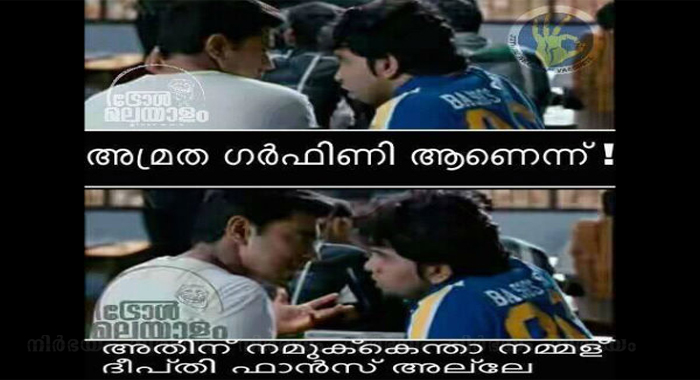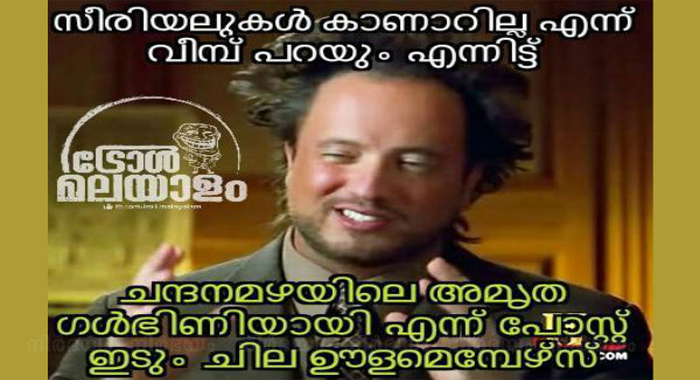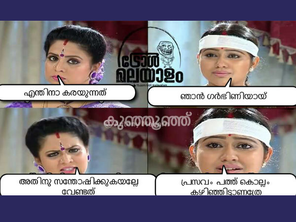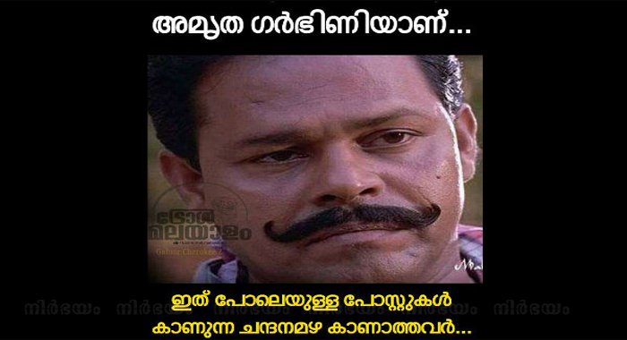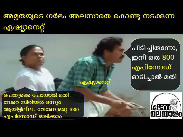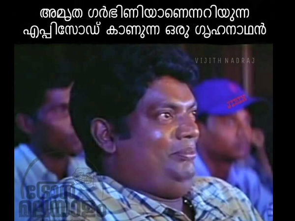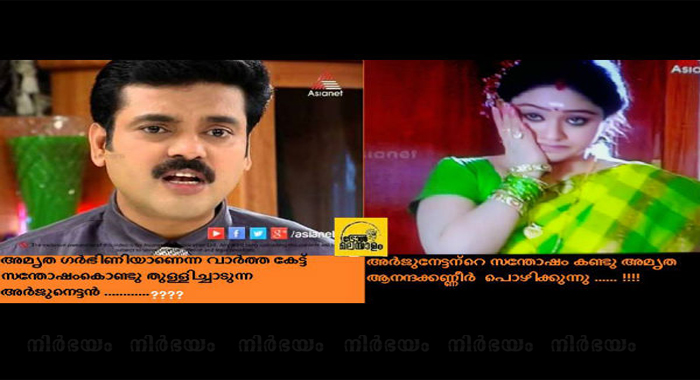 അടുത്തകാലത്തായി സോഷ്യൽ മീഡിയയിൽ ഏറെ ചര്ച്ചയ്ക്ക് വഴിയൊരുക്കിയ താരമാണ് ചന്ദനമഴയിലെ അമൃത .അരുവിക്കരയിലെ തെരെഞ്ഞെടുപ്പ് പ്രചാരണത്തിന്റെ ഭാഗമായി താരം നടത്തിയ പ്രസംഗം സോഷ്യൽ മീഡിയകളിൽ ഏറെ ചൂടുപിടിച്ച ചർച്ചയ്ക്ക് വഴിയൊരുക്കിയിരുന്നു.എന്നാൽ ഇപ്പോഴിതാ അമൃത വീണ്ടും സോഷ്യൽ മീഡിയകയിൽ ചർച്ചയാവുകയാണ്. വിഷയം അരുവിക്കരയും തിരഞ്ഞെടുപ്പുമൊന്നുമല്ല. ചന്ദനമഴയിലെ അമൃത ഗര്ഭണിയായി.കഴിഞ്ഞ എപ്പിസോഡില് അമൃത ഗര്ഭണിയായ വാര്ത്ത അറിഞ്ഞതോടെ ഫേസ്ബുക്ക് ട്രോളന്മാര് പണി തുടങ്ങിക്കഴിഞ്ഞു. ഫേസ്ബുക്കിലെ ഹാസ്യ പേജുകളില് ഇപ്പോള് അമൃതയും ഗര്ഭവുമാണ് വിഷയം.മുമ്പ് അരുവിക്കരയില് വന്ന്റോഡിനെ കുറ്റംപറഞ്ഞ് പ്രസംഗിച്ച കാര്യം കൂടി കൂട്ടിച്ചേര്ത്താണ് പരിഹാസങ്ങള്.സീരിയലിനെ പരിഹസിച്ചുകൊണ്ടുള്ള ചില ട്രോളുകൾ കാണാം….