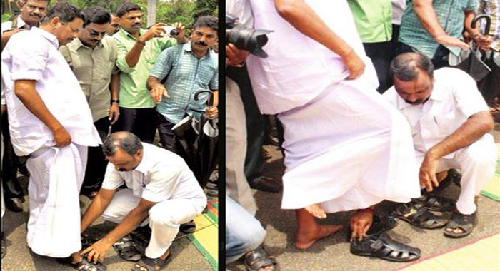 തിരുവനന്തപുരം: നിയമസഭാ സ്പീക്കര് എന് ശക്തന് തന്റെ ചെരുപ്പ് പേഴ്സണല് സ്റ്റാഫ് അംഗത്തെ കൊണ്ട് അഴിപ്പിച്ചത് വിവാദമാകുന്നു.നിയമസഭാ വളപ്പിലെ നെല്കൃഷി വിളവെടുപ്പിനിടെ കറ്റ മെതിക്കാനെത്തിയപ്പോഴാണ് എന് ശക്തന് തന്റെ ചെരുപ്പിന്റെ വാര് സ്വന്തം ഡ്രൈവറെക്... [Read More]