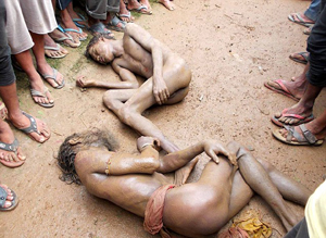 കൊല്ക്കത്ത: പശ്ചിമബംഗാളില് ഏഴു വയസുകാരിയെ കൂട്ടമാനഭംഗപ്പെടുത്തിയ ശേഷം കൊലപ്പെടുത്തി മരത്തില് കെട്ടിത്തൂക്കിയ സംഭവത്തിൽ പ്രതികളെന്ന് സംശയിക്കുന്ന മന്ത്രവാദിയെയും രണ്ടുസഹായികളെയും നാട്ടുകാര് നഗ്നയാക്കി മര്ദ്ദിച്ച് തെരുവിൽ വലിച്ചെറിഞ്ഞു . മര്ദനത്ത... [Read More]
