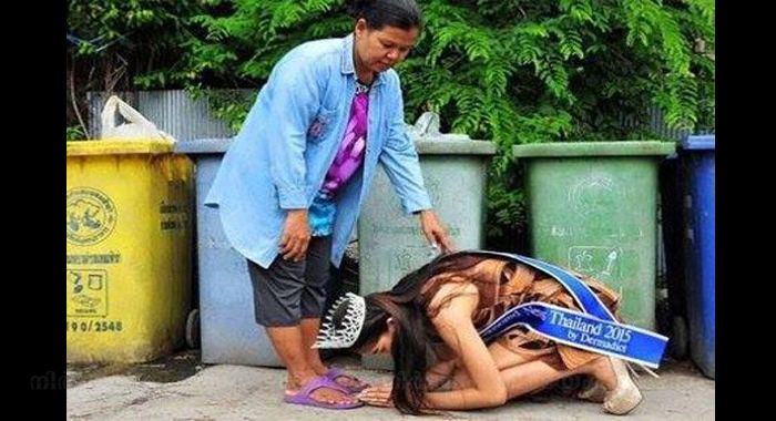 തായ്ലന്റിൽ സുന്ദരിപ്പട്ടം സ്വന്തമാക്കിയ പതിനേഴുകാരി ഖനീറ്റ മിന്റ് സസേങ് തന്റെ അമ്മയുടെ കാൽ തൊട്ടു വണങ്ങുന്ന ചിത്രമാണ് ഇപ്പോൾ സോഷ്യൽ മീഡിയയിൽ ചർച്ചയാകുന്നത്. കഴിഞ്ഞമാസമാണ്തായ്ലന്ഡില് നടന്ന മിസ് അണ്സെന്സേര്ഡ് ന്യൂസ് തായ്ലന്ഡ് 2015 എന്ന സൗന്ദര്യമത്സരത്തില് ഖനീറ്റ കിരീടം ചൂടിയത്.പ്രത്യേകത അതല്ല. മത്സരവേദിയില്നിന്ന് അവള് നേരേ പോയത് അമ്മയെ കാണാനാണ്.തായ്ലന്റിലെ ഒരു കുഗ്രാമത്തിലെ പാവപ്പെട്ട കുടുംബത്തിലായിരുന്നു ഖനിറ്റയുടെ ജനനം. കുപ്പ പെറുക്കിയും വീട്ടുവേല ചെയ്തുമാണ് ഖനീറ്റയുടെ അമ്മ അവളെ വളർത്തിയത് .അമ്മയുടെ പ്രോത്സാഹനമാണ് തന്റെ നേട്ടത്തിനു പിന്നിലെന്ന് ഖനിറ്റ പറയുന്നു. സത്യസന്ധമായി ജോലി ചെയ്താണ് ഞാനും എന്റെ അമ്മയും ഇതുവരെ ജീവിച്ചത്. അതില് നാണക്കേടിന്റെ ആവശ്യമൊന്നുമില്ലെന്നാണ് മിന്റ് പറയുന്നത്. ഇനിയും ഈ ജോലിയില് അമ്മയെ സഹായിക്കുന്നതിനും സന്തോഷമേയുളളുവെന്നും മിന്റ്. യാഥൃശ്ചികമായാണ് തായ്ലന്ഡില് നടന്ന സൗന്ദര്യ മത്സരത്തില് പങ്കെടുക്കുന്നത്. എന്നാല് വിജയിക്കുമെന്ന പ്രതീക്ഷയൊന്നും ഉണ്ടായിരുന്നില്ല. മത്സരവിജയിയുടെ പേര് പ്രഖ്യാപിച്ചപ്പോള് ഒരു സ്വപ്നത്തില് എന്നപോലെയാണ് കേട്ടതെന്നും തായ് സുന്ദരി പറയുന്നു. സെപ്റ്റംബര് 25നാണ് യുവതികള്ക്കും, ഭിന്നലിംഗക്കാര്ക്കും വേണ്ടി മിസ് തായ്ലന്ഡ് മത്സരം നടത്തുന്നത്. മത്സരത്തില് വിജയിയായ ശേഷം മിന്റിനെ തേട നിരവധി സിനിമകളും, പരസ്യങ്ങളും, ടെലിവിഷന് പരിപാടികളുമൊക്കെ എത്തുന്നുണ്ട്. എങ്ങനെയെങ്കിലും പണം സമ്പാദിച്ച് തന്റെ കുടുംബത്തെ രക്ഷപെടുത്തണമെന്ന ആഗ്രഹത്തിലാണ് മിന്റ് ഇപ്പോള്. എന്നാല് ഇതുകൊണ്ടൊന്നും ശുചീകരണ ജോലി നിര്ത്തില്ലെന്നും അമ്മ ഇപ്പോഴും മാലിന്യങ്ങള് ശേഖരിച്ചു സംസ്കരിക്കാന് പോകുന്നതായും മിന്റ് അഭിമാനത്തോടെ പറയുന്നു.ഖനിതയുടെ ചെറുപ്പത്തില്ത്തന്നെ പിതാവ് ഇവരെ ഉപേക്ഷിച്ചു പോയതാണ്. തുടര്ന്ന് മകളെ വളര്ത്താനാണ് ആ അമ്മ കഷ്ടപ്പെട്ടത്. എന്നാല്, സ്കൂള് വിദ്യാഭ്യാസത്തിനു ശേഷം തുടര്ന്നു പഠിക്കാന് ഖനിതയെ ദാരിദ്ര്യം അനുവദിച്ചില്ല. ഈ പ്രതിസന്ധികള്ക്കിടയില്നിന്നാണ് സൗന്ദര്യമത്സരവേദിയിലേക്ക് ഖനിത എത്തുന്നത്.