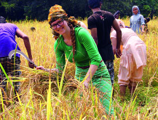 പ്രദേശത്തെ ചില പ്രായം ചെന്ന കര്ഷകര് കുട്ടികളെ സഹായിക്കാനെത്തി. അവരുടെ പാട്ട് വിദ്യാര്ഥികള് ഏറ്റു പാടി. ബെല്ജിയത്തില് നിന്ന് ഇന്റേണ്ഷിപ്പിനായി രാജഗിരി കോളേജില് എത്തിയ വെര്ജിനിക്ക് വിളവെടുപ്പുത്സവം പുതിയ അനുഭവമായി. കൊയ്ത്ത്പാട്ട് മനസ്സിലായില്ലെങ്കിലും വെര്ജിനി വിളവെടുപ്പിലെ താരമായി.