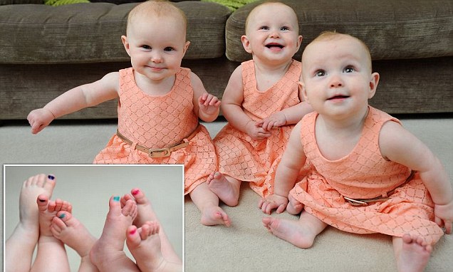 ബ്രിട്ടണിലെ സൗത്ത് വെയ്സിൽ നിന്നുള്ള കാരൻ – ഇയാൻ ഗിൽബെർട്ട് ദാമ്പതികൾക്ക് കുട്ടികൾ മൂന്നാണ്.കഴ്ച്ചയിലും മൂന്നുപേരും ഒരുപോലെയാണ്. ഇവരെ തിരിച്ചറിയാനാവാതെ കുഴങ്ങി. ഒടുവില് അവര് ഒരു മാര്ഗം കണ്ടെത്തി. കുഞ്ഞുങ്ങളുടെ പെരുവിരലിലെ നഖത്തില് പല നിറങ്ങള് പുരട്ടി. അങ്ങനെ മക്കളെ അവര് ധൈര്യപൂര്വ്വം പേരുചൊല്ലി ഓമനിക്കാന് തുടങ്ങി.ഫിയോണ്, മാഡിസണ്, പൈജി എന്നിങ്ങനെയാണ് കുട്ടികളുടെ പേരുകള്. ഫിയോണിന്റെ നഖത്തില് നീലയുടെ വകഭേദവും മാഡിസണിന്റെ നഖത്തില് മിന്റ് ഗ്രീനും പൈജിയുടെ നഖത്തില് പര്പ്പിള് കളറുമാണ് നല്കിയിരിക്കുന്നത്.മൂന്ന് കുട്ടികൾക്കുമായി ആഴ്ചയിൽ 120 കുപ്പി നപ്കിനുകളും 84 കുപ്പിപലുമാണ് നൽകുന്നത് .ഒരുപോലിരിക്കുന്ന ഇവരിൽ മൂന്ന് പേരിൽ ആർക്ക് എത്ര പാൽ നൽകിയെന്നോ ആരുടെ നപ്കിനാണ് ഒടുവിൽ മാറ്റിയതെന്നോ ആരെയാണ് ആദ്യം കുളിപ്പിച്ചെന്നോ ഒരെത്തും പിടിയും കിട്ടതെ വിഷമിച്ചപ്പൊയാണ് അച്ഛനമ്മമാർക്ക് ഇത്തരമൊരു ബുദ്ധിയുധിച്ചത്.കുട്ടികളെ തിരിച്ചറിയാന് കളര് കോഡ് ഉപയോഗിക്കുന്ന ആദ്യത്തെ മാതാപിതാക്കളാണ് കാരെനും ഗില് ബര്ഗും. ഇവർ ഇന്ന് തിരക്കേറിയ ടെലിവിഷൻ താരങ്ങളാണ്.മൂന്നുപേരും അവരുടെ റോളുകൾ തകർത്ത് അഭിനയിക്കുന്നു.സാധാരണ ഗർഭത്തിലൂടെ തന്നെയാണ് ഇവർ ജന്മവും.ഒന്നരലക്ഷത്തിൽ ഒരാൾക്ക് വരുന്ന അപൂർവതയിലൂടെയാണ് മൂവർക്കും അടിമുടി സാമ്യമുണ്ടായത്ഇവരുമായി പുറത്തുപോകുന്നത് ഒരു സൈനിക ഓപ്പറേഷൻ തന്നെയാണെന്ന് അമ്മയായ കാരൻ പറയുന്നു.’ഓപ്പറേഷൻ ടിപ്ലറ്റ്’ എന്നാണ് ഇവരുമൊന്നിച്ചുള്ള ഔട്ടിങിനെ വിശേഷിപ്പിക്കുന്നതെന്നും കാരൻ പറയുന്നു.ഇവരെ കൂടാതെ നാലുവയസ്സുള്ള മറ്റൊരു പെണ്കുട്ടി കൂടെയുണ്ട് ഈ ദാമ്പതികൾക്ക്.
