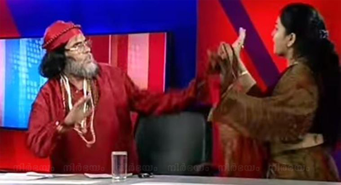 ന്യൂഡൽഹി: ഐ.ബി.എൻ 7ലെ ചർച്ച പരിപാടിക്കിടെ അഭിപ്രായവ്യത്യാസങ്ങളെ തുടർന്ന് അതിഥികൾ തമ്മിൽ ഏറ്റുമുട്ടി. വിവാദ ആള്ദൈവമായ രാധേ മായെക്കുറിച്ചുള്ള ചര്ച്ചയ്ക്കിടെയാണ് സംഭവം. ഹിന്ദു മഹാസഭയുടെ പ്രതിനിധിയും സ്വയം പ്രഖ്യാപിത ആൾദൈവവുമായ ഓം ജിയും വനിത ജ്യോതിഷിയും മതാധ്യാപികയുമായ ദീപാ ശർമ്മയുമാണ് പരസ്പരം അടികൂടിയത്. അടി കിട്ടിയപ്പോള് ഓംജി തിരിച്ചു തല്ലുകയും ചെയ്തു. എല്ലാം ലൈവായി ജനങ്ങള് കാണുകയും ചെയ്തു. രാധേമായെ പറ്റി പറയാതെ സ്വയം നന്നാകാന് ആവശ്യപ്പെട്ട ഓംജിയുടെ പരാമര്ശത്തിന്നെതിരെ രാഖി ഭായി പ്രതിഷേധിച്ചപ്പോള്, താന് പറഞ്ഞത് ദീപയെക്കുറിച്ചാണ് എന്നാണു ഓംജി പ്രതികരിച്ചത്. ഇതു കേട്ടപാടെ ദീപാ ശര്മ ഓംജിയെ തല്ലുകയായിരുന്നു.ഓംജി യാകട്ടെ കിട്ടിയ തല്ല് ദീപയ്ക്ക് തന്നെ തിരിച്ചു നല്കി.