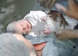 തകര്ന്ന കെട്ടിട അവശിഷ്ടങ്ങള്ക്കിടയില് കുടുങ്ങിക്കിടന്ന രണ്ടു മാസം പ്രായമുള്ള കുഞ്ഞിനെ രക്ഷാപ്രവർത്തകർ 16 മണിക്കൂറിനു ശേഷംജീവനോടെ പുറത്തെടുത്തു. കുഞ്ഞിൻറെ അമ്മയെയും ഇവർ രക്ഷപ്പെടുത്തി. സിറിയയിലെ അലെപ്പോയിലാണ് സംഭവം നടന്നത്. ഈ അവിശ്വസനീയമായ കാഴ്ച രക്ഷാപ്രവർത്തകർ വീഡിയോയിൽ പകർത്തി ഓണ്ലൈനിൽ പോസ്റ്റ് ചെയ്തിട്ടുണ്ട്. ഈ വീഡിയോയിൽ തകര്ന്നു വീണ ഒരു ഭിത്തിക്ക് അടിയില് നിന്നും ഒരു കുഞ്ഞിൻറെ കരച്ചിലും പിന്നീട് രക്ഷാപ്രവർത്തകർ പാറക്കഷണങ്ങള് നീക്കുമ്പോള് അതിനിടയിൽ ഒരു കുഞ്ഞിൻറെ മുഖവും തെളിഞ്ഞു വരുന്നതായി കാണാവുന്നതാണ്. അതിനു ശേഷം രക്ഷാപ്രവർത്തകർ കുഞ്ഞിൻറെ മുഖം കല്ലിൻറെ കൂര്ത്ത ഭാഗത്ത് തട്ടാതെ പതുക്കെ പുറത്തേക്ക് എടുക്കുന്നതും കാണാം. അപകടം പിടിച്ച സാഹചര്യത്തിൽ നിന്നും കുഞ്ഞിനേയും അമ്മയെയും രക്ഷപ്പെടുത്തിയെടുക്കാൻ രക്ഷാപ്രവർത്തകർക്ക് ദീർഘ സമയം വേണ്ടി വന്നു. സിറിയയിലെ വിമതര് പിടിച്ചെടുത്ത ഭാഗങ്ങളിലേക്ക് സൈന്യം നടത്തുന്ന ആക്രമണങ്ങളില് ദിവസവും നൂറു കണക്കിന് പേരാണ് ഇവിടെ മരണപ്പെടുന്നത്.