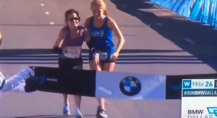 ഓട്ടമത്സരത്തിനിടെ തളര്ന്നു വീണ എതിരാളിയെ ഒന്നാമത്തെത്തിച്ച് എതിരാളി. ഏവരെയും അത്ഭുതപ്പെടുത്തുന്ന ഈ സംഭവം അരങ്ങേറിയത് വാഷിംഗ്ടണില് ആണ്. വാഷിംഗ്ടണില് നടന്ന ഡാളസ് മാരത്തണിന്റെ മത്സരവേദിയിലായിരുന്നു സംഭവം. ഇവരുടെയുയും ഹൃദയം കീഴടക്കുന്ന ഈ സംഭവം ഇതിനോടകം നിരവധി പേരാണ് യുട്യൂബില് കണ്ടിരിക്കുന്നത്.