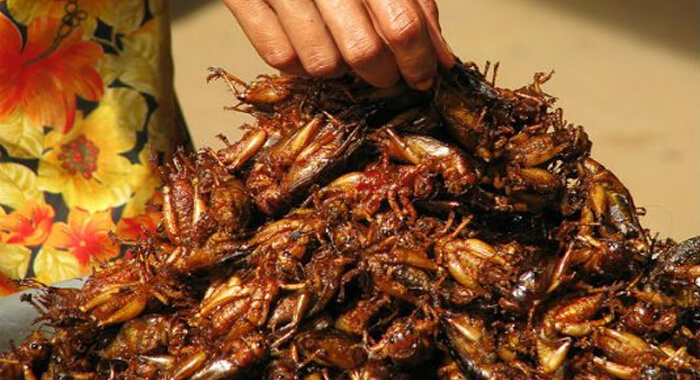 തായ്ലാന്ഡിലെ ഒരു വിഭവമാണ് പൊരിച്ച പച്ചക്കുതിരകള്. ഒത്ത വലിപ്പമുള്ളവയെ ഉപ്പ്, കുരുമുളക്, മുളകുപൊടി എന്നിവ ചേര്ത്ത് വലിയൊരു പാത്രത്തില് പൊരിച്ചെടുക്കുന്നു. പോപ്കോണ് കൊറിക്കുന്ന പോലെയാണ് ഇവ തോന്നുകയെന്ന് കഴിച്ചവര് പറയുന്നു.