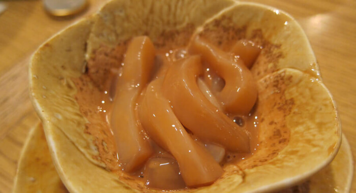 നമ്മുടെ നാട്ടിലെ കൂന്തളിനോട് സാമ്യമുള്ള രുചിയാണ് ട്യൂണ മത്സ്യത്തിന്റെ കണ്ണു കൊണ്ടുള്ള വിഭവത്തിന്. ജപ്പാനാണ് ഈ വിഭവത്തിന്റെ ഉദ്ഭവകേന്ദ്രം.