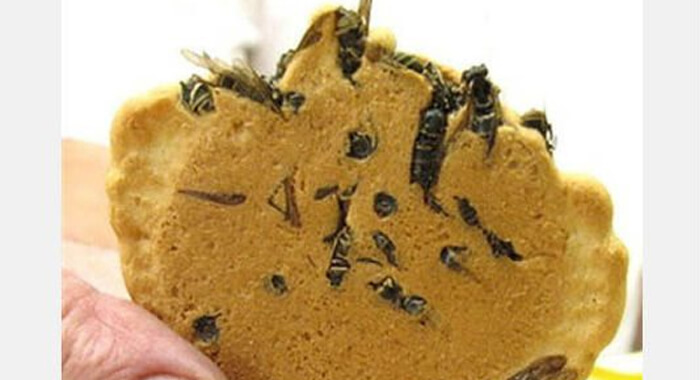 കടന്നലുകളാല് നിറഞ്ഞ ബിസ്ക്കറ്റാണിത്. ജപ്പാനിലെ മറ്റൊരു വിചിത്ര ആഹാരം.