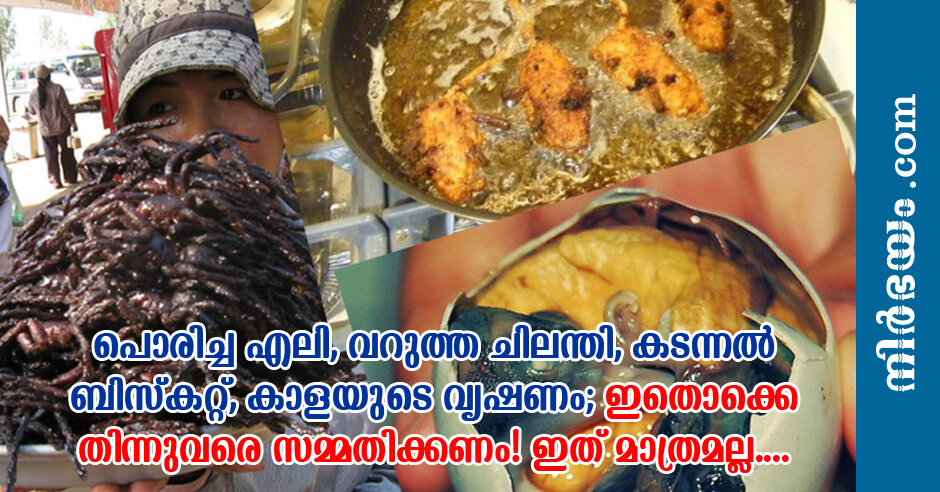 എന്നാല് പൊരിച്ച എലി, വേവിക്കാത്ത നീരാളി, കോഴിയുടെ പാദം, മൊരിഞ്ഞ ചിലന്തി, മൃഗങ്ങളുടെ വൃഷണം ഇവയെല്ലാം തീന്മേശയിലിരിക്കുന്നത് ഒന്ന് ചിന്തിച്ചു നോക്കൂ.