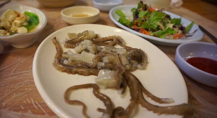 17. സന്നാക്ജി നീരാളിയുടെ പച്ചയിറച്ചി (കൊറിയ)