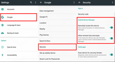 2. അതിനു ശേഷം Google settings> Security> Android device manager എന്നു ചെയ്യുക.