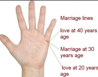 * ഹൃദയരേഖയ്ക്കും ചെറുവിരലിനും കൃത്യം നടുവിലാണ് ഈ രേഖയെങ്കില് 30നോടടുത്തു വിവാഹം നടക്കുമെന്നു പറയാം.