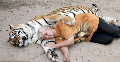 ഫ്ലോറിഡയിലെ ഒരു യുവതി വീട്ടുമുറ്റത്തെ കൂട്ടിൽ ഓമനിച്ചു വളർത്തുന്നത് രണ്ട് ബംഗാൾ കടുവകളെ. ഇവയെ വളർത്താനായി യുവതി തൻറെ ജോലി വരെ ഉപേക്ഷിച്ചു.ജാനിസ് ഹെയ്ലി എന്ന യുവതിയാണ് തൻറെ ഓമന മൃഗങ്ങളായ രണ്ട് കടുവകളെ ഉമ്മ വെച്ചും കെട്ടിപ്പിടിച്ചും ഭക്ഷണം വാരികൊടുത്തും സമയം ചിലവഴിക്കുന്നത്.സാബർ എന്ന ആണ് കടുവയും ജാന്ത എന്ന പെണ്കടുവയുമാണ് ഹെയ്ലിയുടെ ഓമന മൃഗങ്ങൾ. തൻറെ കൈവിരൽ കുടിക്കാതെ ഒരു ദിവസം പോലും സാബർ ഉറങ്ങാറില്ലെന്ന് ഹെയ്ലി പറഞ്ഞു.20 വർഷങ്ങൾക്ക് മുമ്പ് ഹെയ്ലി തൻറെ ജോലി ഉപേക്ഷിച്ച് കടുവകളെ വളർത്തുന്നതിൻറെ ട്രെയിനിങ്ങിന് പോകുകയായിരുന്നു. അതിനു ശേഷം ഷഫർ എന്ന ഒരു കടുവക്കുഞ്ഞിനെ ഹെയ്ലി വളർത്താനായി വാങ്ങി.പിന്നീടാണ് ജാന്തയെന്ന പെണ് കടുവയെ വാങ്ങുന്നത്. പിന്നീട് പെട്ടെന്നൊരു ദിവസം ഷഫർ മരണപ്പെട്ടു. അതിനു ശേഷമാണ് സാബർ എന്ന വെള്ളക്കടുവയെ ഹെയ്ലി വാങ്ങുന്നത്.