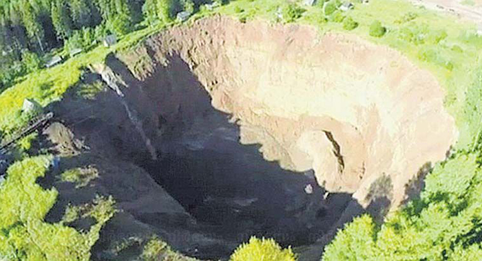 മോസ്കോ: യുറാൾ മലനിരകളിലെ സോളികാംസ്ക് പ്രദേശത്തിനടുത്ത് കഴിഞ്ഞ വർഷം അവസാനം രൂപപ്പെട്ട വൻ കുഴി വളരുന്നു.ഇത് സമീപവീടുകളുടെ നിലനിൽപ്പിന് തന്നെ ഭീഷണിയാണ്.ഇതിനോടകം 20 വീടുകളെ വിഴുങ്ങിയ ഈ ഭീമൻ കുഴി മൂന്നിരട്ടിയായി വളർന്നു വരികയാണെന്നാണ് പുതിയ ചിത്രങ്ങൾ സാക്ഷ്യപ്പെടുത്തുന്നത്.