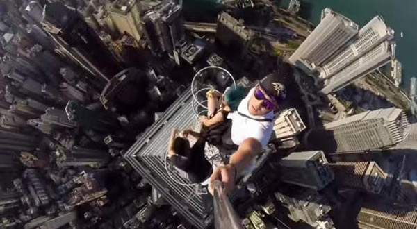 ആളുകളുടെ ഇടയിൽ സെൽഫി ഇപ്പോൾ ഒരു താരമായി കഴിഞ്ഞു. സെല്ഫിയെടുക്കുന്നതിനിടെ അബദ്ധത്തിൽ മരണപ്പെടുന്ന വാർത്തകളും ഇപ്പോൾ ഏറെ കേട്ടു വരുന്നു. തോക്ക് സ്വയംചൂണ്ടി സെല്ഫിയെടുക്കുന്നതിനിടെ അബദ്ധത്തില് വെടിപൊട്ടി യുവാവ് മരിച്ചതും, മൂര്ഖന് പാമ്പിന്റെയൊപ്പം സെല്ഫിയെടുത്ത യുവതി പാമ്പിന്റെ കടിയേറ്റ് ആശുപത്രിയിലായ വാർത്തയും , ട്രെയിനിന് മുകളിൽ നിന്ന് സെൽഫിയെടുക്കാൻ ശ്രമിക്കവേ വിദ്യാർഥി മരിച്ചതും നാം അടുത്ത കാലത്തായി കേട്ട വാർത്തകളാണ്.അതിനിടയിലാണ് ഒരു സെല്ഫി യുട്യൂബില് വൈറലായിക്കൊണ്ടിരിക്കുന്നത്. ‘World’s scariest selfie’ എന്ന വിശേഷണത്തോടെയുള്ള ഈ സെൽഫി ലോകത്തിലെ ഏറ്റവും ഭയാനകമായ സെൽഫി എന്ന പേരും നേടിക്കഴിഞ്ഞു. ഹോങ്കോങില് അംബരചുംബിയായ ഒരു കെട്ടിടത്തിന്റെ മുകളിൽ കയറിയിരുന്ന് വാഴപ്പഴം തിന്നുന്ന വിദ്യാര്ഥികളുടെ വീഡിയോയ്ക്കാണ് ഇപ്പോൾ ആരാധകർ കൂടി വരുന്നത്. ദാനിയേല് ലാവ് എന്ന വിദ്യാർഥിയും അവരുടെ രണ്ട് സുഹൃത്തുക്കളുമാണ് ഈ വീഡിയോയിലുള്ളത്.ഒരു ‘സെല്ഫി സ്റ്റിക്ക്’ ഉപയോഗിച്ചാണ് ഈ ഫൂട്ടേജ് എടുത്തിരിക്കുന്നത്. ഈ വീഡിയോ യുട്യൂബില് ഇപ്പോൾ തന്നെ 214,131 പേർ കണ്ടതായി റിപ്പോർട്ടുകൾ സൂചിപ്പിക്കുന്നു.